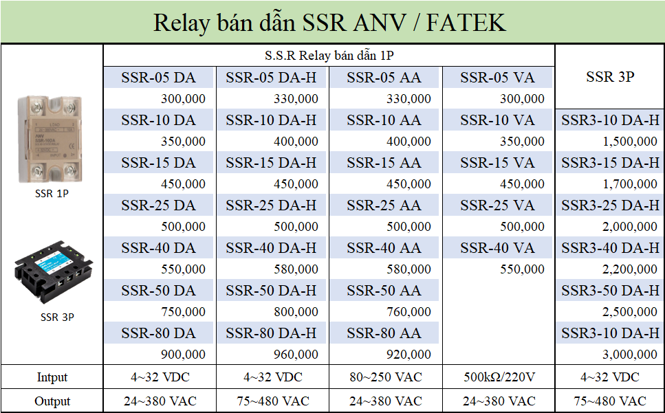 Danh mục: RELAY BÁN DẪN SSR Nhà sản xuất: ANV TAIWAN